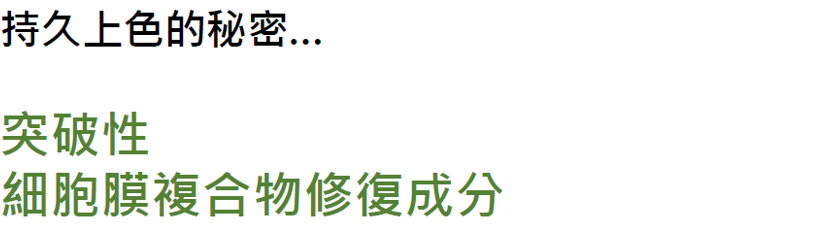 配合與頭髪細胞膜複合物(CMC)構造相同的細胞膜複合物修護成分,修護頭髮,同時暢通水分及養分的輸送通道,讓染色成分順利滲透。