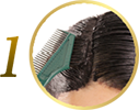 把充裕的染髮護髮膏擠出於梳上,並梳至髮根和頭髮內側 |