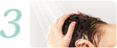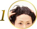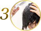 把頭髮和手掌弄濕後,取充裕的洗髮露於手中 |