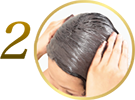 洗完頭後擦乾,把染髮護髮膏擠在濕潤的手掌上,揉搓所有頭髮及髮根 |