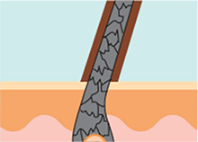 染色成分滲透頭髮表面及稍微內部位置